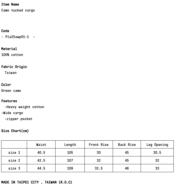 PLATEAU Camo tucked cargo